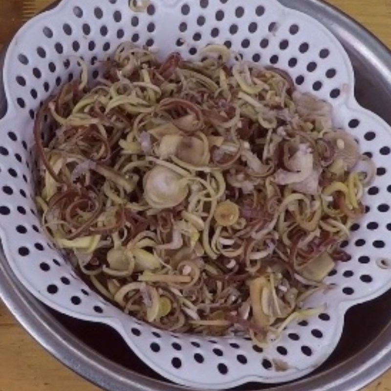 Sau khi ngâm đủ thời gian, vớt hoa chuối ra và rửa sạch. Để giữ cho màu sắc của hoa chuối luôn tươi đẹp, bạn có thể dùng hỗn hợp nước muối pha giấm hoặc thậm chí là nước vo gạo. Điều này sẽ giúp hoa chuối giòn và trắng hơn, rất thích hợp để chế biến món gỏi hay các món canh.