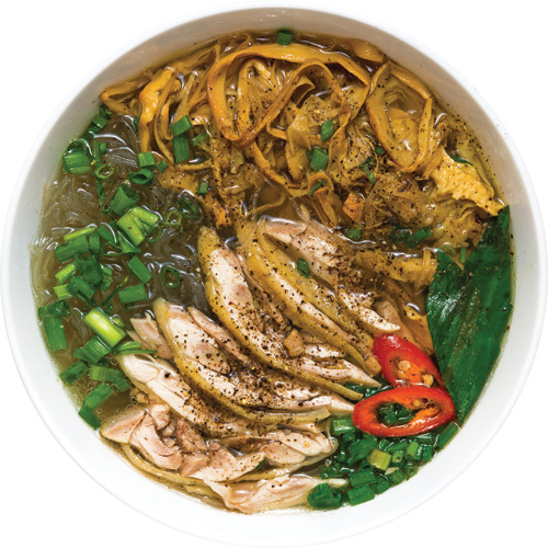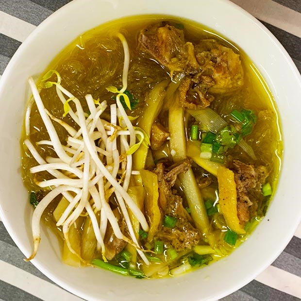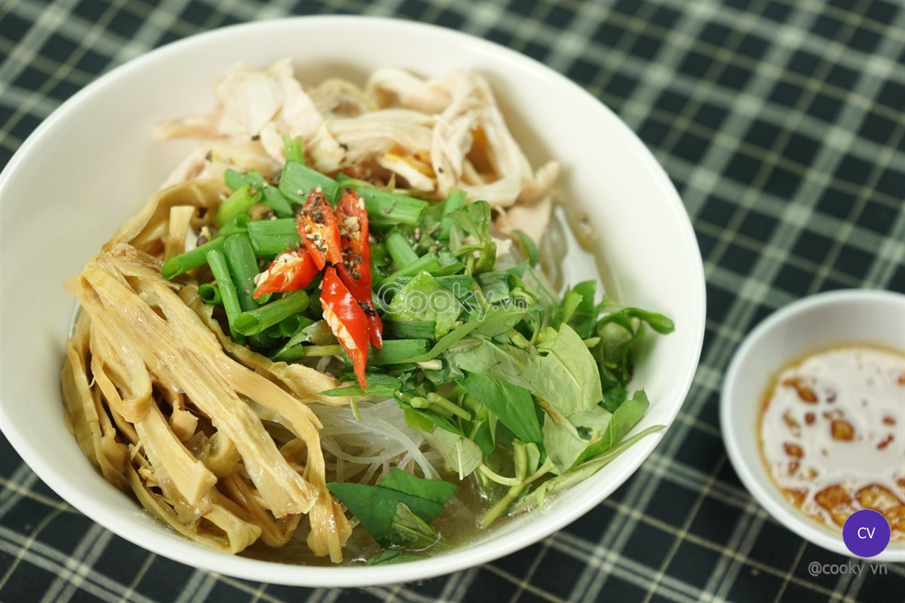 Cuối cùng, hãy chan nước dùng nóng hổi vào tô miến, và đừng quên ăn kèm với các loại rau sống cho thêm phần hấp dẫn. Món miến măng gà sẽ trở thành bữa sáng hoàn hảo, thơm ngon và đầy đủ dinh dưỡng cho cả gia đình bạn!