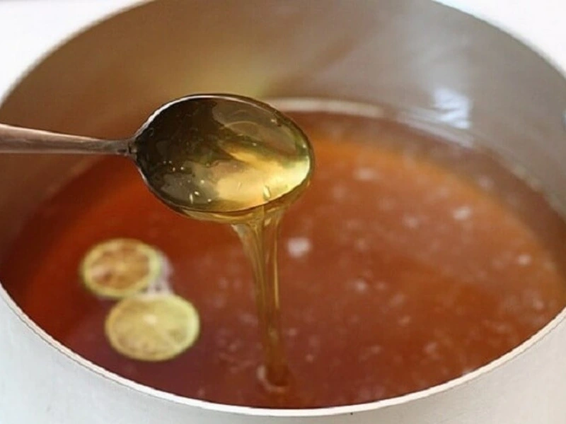 Khi đã có nguyên liệu, hãy cho đường và nước vào nồi, đun ở lửa vừa và không quên lược lại nước cốt chanh để loại bỏ hạt. Đặc biệt, trong quá trình nấu, bạn tuyệt đối không khuấy để tránh hiện tượng đường bị kết tinh. Đợi cho đến khi hỗn hợp sôi, bọt nổi lên và chuyển sang màu vàng nhạt, bạn sẽ thấy hương thơm tỏa ra quyến rũ.