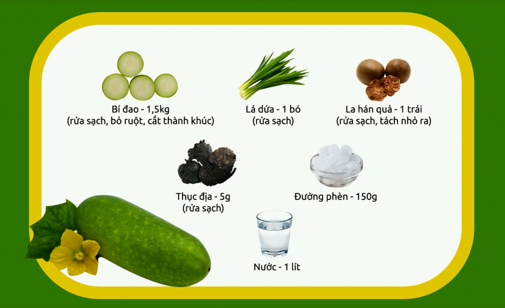 Để nấu một nồi nước sâm bí đao thơm ngon, trước hết chúng ta cần chuẩn bị những nguyên liệu tươi ngon và chất lượng. Bí đao là nguyên liệu chính, với 1,5 kg bí đao xanh, chọn loại già có nhiều phấn trắng và vỏ đốm vàng để đảm bảo hương vị tốt nhất. Ngoài bí đao, lá dứa cũng là một thành phần không thể thiếu, khoảng 200 gram lá dứa giúp tạo hương thơm tự nhiên cho món nước.