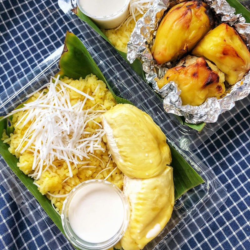Cuối cùng, đừng quên thêm một vài chiếc lá dứa xung quanh đĩa cho thêm phần xanh tươi. Món xôi sầu riêng không chỉ là sự kết hợp tuyệt vời giữa vị ngon của xôi, sầu riêng, và nước cốt dừa mà còn là một tác phẩm ẩm thực hoàn hảo để bạn chiêu đãi mọi người.
