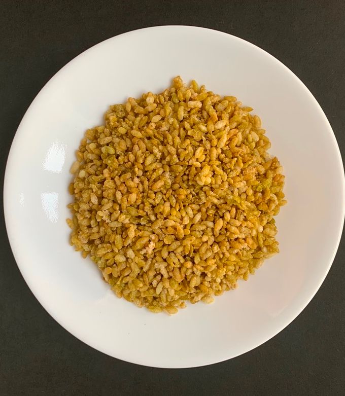 Cuối cùng, bạn chỉ cần cho phần cốm rang đường vào một chiếc đĩa và thưởng thức. Món này rất hợp để nhâm nhi cùng một ly trà hay ăn kèm với chuối. Hy vọng bạn sẽ thích món ăn vặt này như mình nhé!