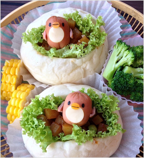 Ngoài ra, bạn có thể biến tấu xúc xích thành những chú bạch tuộc nhỏ xinh. Cách làm khá đơn giản: chỉ cần cắt đôi cây xúc xích theo chiều dọc, để lại một phần đầu và khía vài đường ở phần dưới. Khi luộc hoặc chiên, phần chân sẽ tự động xòe ra, trông như những chú bạch tuộc đang bơi lội. Đặt chúng lên một đĩa trứng chiên và thêm mắt miệng bằng những hạt đậu đen hoặc rong biển để tạo điểm nhấn.