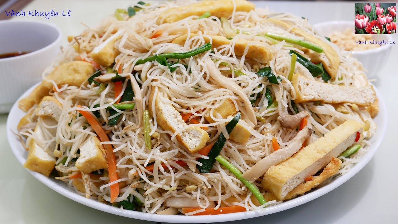 Sau khi ngâm, bạn vớt bún ra và xả lại với nước lạnh để ráo. Tiếp theo, hãy thái sợi cà rốt, đậu hũ, và nấm bào ngư, nấm đùi gà để tạo sự đa dạng cho món ăn. Khi tất cả đã sẵn sàng, chỉ cần xào chung với nước sốt đậm đà. Một mẹo nhỏ là nên xếp bún vào tô cùng với xà lách, dưa leo cắt sợi, giá đỗ và cà rốt để tăng thêm màu sắc cho món ăn.
