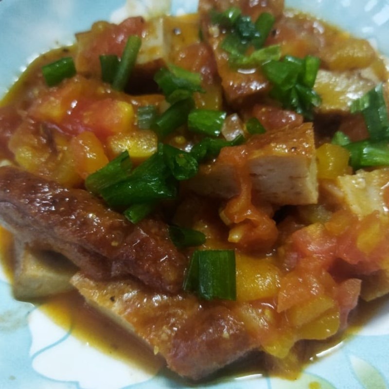 Cuối cùng, cho chả cốm vào chảo, đảo đều cho đến khi các nguyên liệu hòa quyện và thấm đều gia vị. Rắc lên trên một ít hành lá và ớt sừng thái nhỏ để tăng thêm phần hấp dẫn. Món chả cốm sốt cà chua không chỉ đẹp mắt mà còn làm hài lòng vị giác của cả gia đình bạn!
