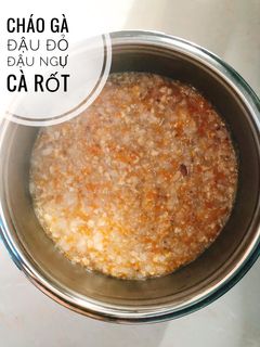 Trong quá trình nấu, hãy hấp chín cà rốt và xay nhuyễn hoặc cắt hạt lựu, sau đó luộc hoặc hấp chín thịt gà để bé dễ tiêu hóa hơn. Nấu gạo cùng với đậu đỏ và hạt sen cho đến khi tất cả đều nhừ thành cháo. Khi cháo đã chín, thêm vào một chút dầu ăn và hầm thêm khoảng 5 phút nữa để tăng thêm hương vị.