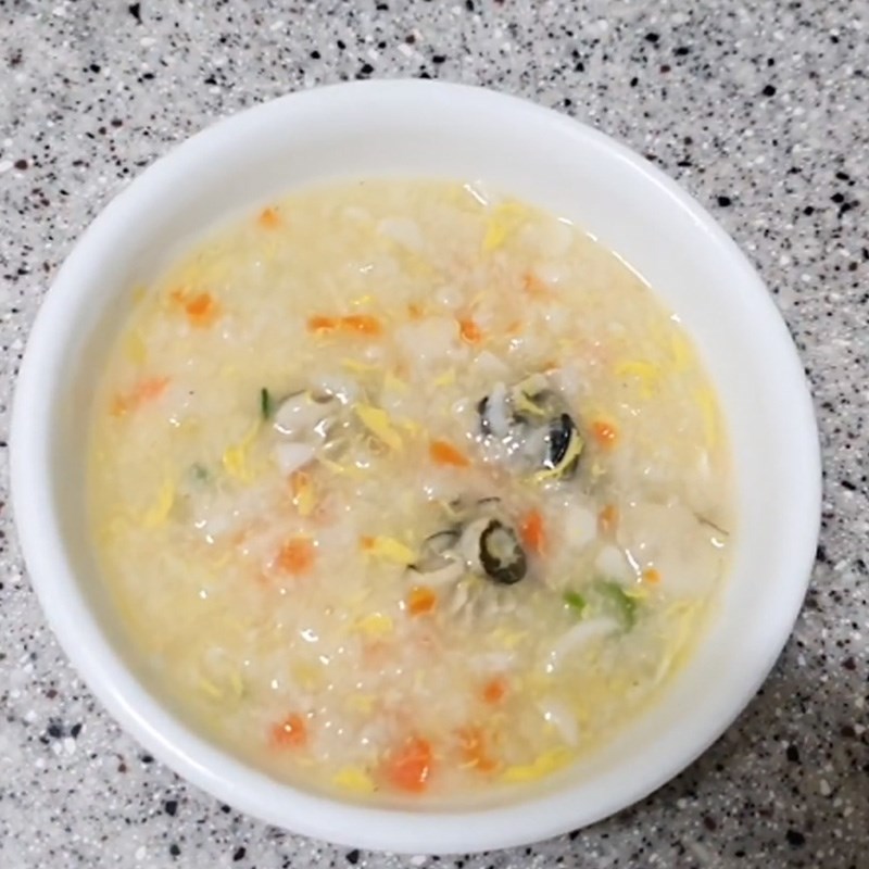 Khi đã sẵn sàng, bạn chỉ cần chuẩn bị khoảng 100g gạo, 5 con hàu, 1 quả trứng gà, nửa củ cà rốt và 100g nấm bạch tuyết. Vo gạo cho sạch và ngâm trong 30 phút. Sau đó, nấu gạo cho đến khi cháo chín mềm, rồi thêm hàu, cà rốt và nấm đã xào vào, khuấy đều và nấu thêm khoảng 5 phút. Bạn có thể nêm thêm một chút gia vị ăn dặm cho bé để tăng hương vị.