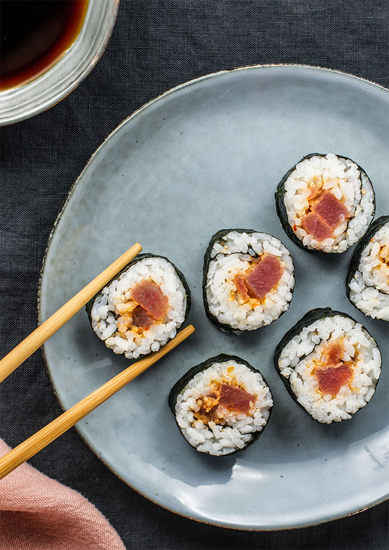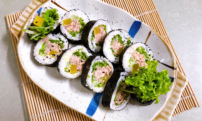 Khâu chuẩn bị cũng rất đơn giản: chỉ cần trộn cá ngừ với sốt mayonnaise để tạo nên hương vị béo ngậy, rồi cuộn lại cùng với cơm và rau củ trong bề mặt rong biển. Món ăn sẽ càng thêm thú vị khi bạn chấm với tương ớt hay mù tạc, cùng một chút xì dầu để thưởng thức theo phong cách Việt Nam.