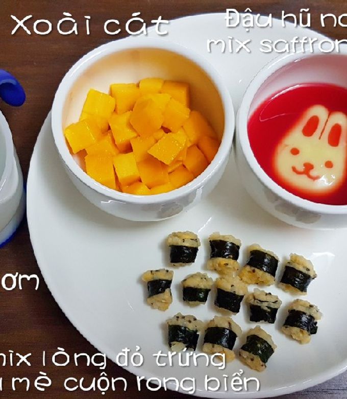 Thêm vào đó, bạn có thể cho bé thử trứng rán và ăn kèm với xoài chín làm món tráng miệng. Cơm cuộn rong biển không chỉ là bữa ăn mà còn là trải nghiệm thú vị cho bé, giúp bé phát triển khẩu vị và khám phá ẩm thực từ sớm. Thật dễ dàng để đổi bữa cho bé và tạo niềm vui trong từng bữa ăn phải không nào?