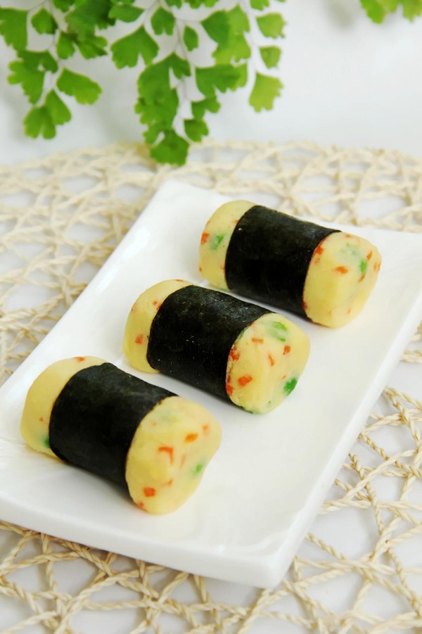 Bạn bắt đầu bằng cách làm mềm lá rong biển, sau đó đặt một lượng cơm nhỏ vào giữa lá và cuộn lại một cách nhẹ nhàng. Món ăn sẽ thêm phần sinh động nếu trộn chút giấm vào cơm, tạo vị chua nhẹ dễ chịu. Đừng quên đan xen những sợi cà rốt và xúc xích để bé cảm nhận được nhiều hương vị khác nhau.