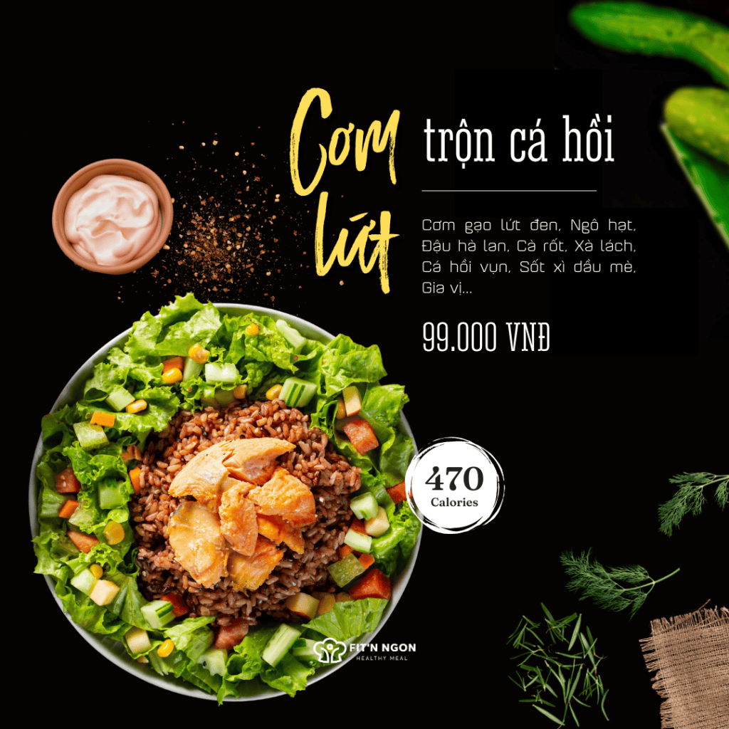 Một phần cơm gạo lứt cá hồi có khoảng 470 calories, đem đến sự ngon miệng với các thành phần như ngô hạt, đậu hà lan, cà rốt và xà lách. Đây là lựa chọn lý tưởng cho những ai yêu thích chế độ ăn lành mạnh. Với sự kết hợp này, không chỉ giúp cơ thể hấp thụ omega-3 từ cá hồi, mà còn cung cấp nhiều chất xơ từ gạo lứt, tốt cho tiêu hóa và hỗ trợ giảm cân một cách hiệu quả.
