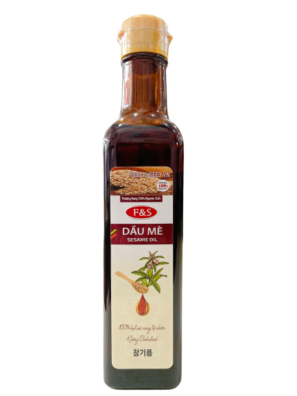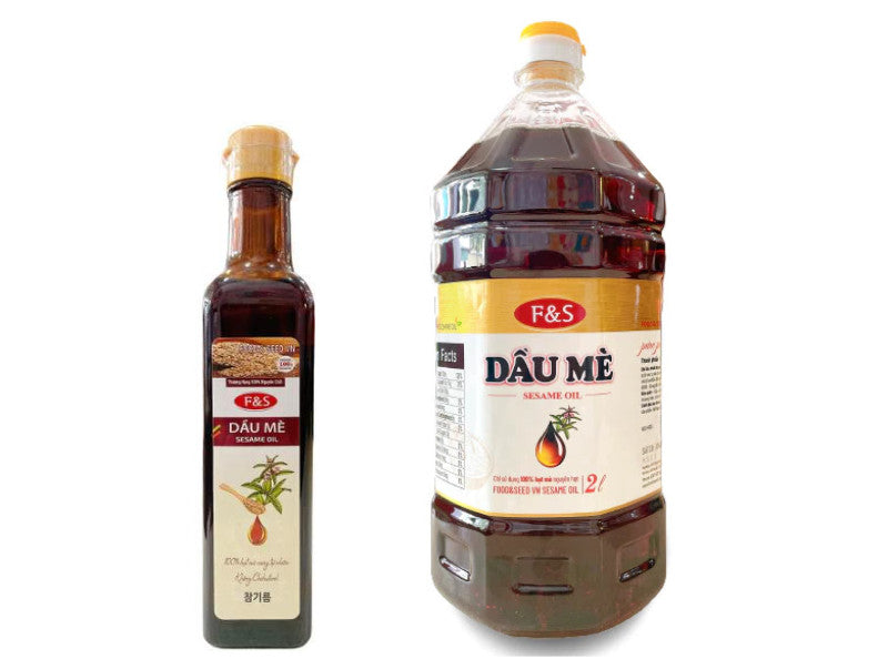 Dầu mè là một nguyên liệu không thể thiếu trong bữa ăn Hàn Quốc, đặc biệt là trong món cơm cuộn (Kimbap). Có ba loại dầu mè phổ biến mà các đầu bếp Hàn Quốc thường ưa chuộng: dầu mè ép từ hạt mè rang, loại dầu màu nâu sẫm mang lại hương vị đặc trưng. Dầu mè của thương hiệu F&S cũng rất được khen ngợi bởi độ thơm ngon và chất lượng tuyệt vời.