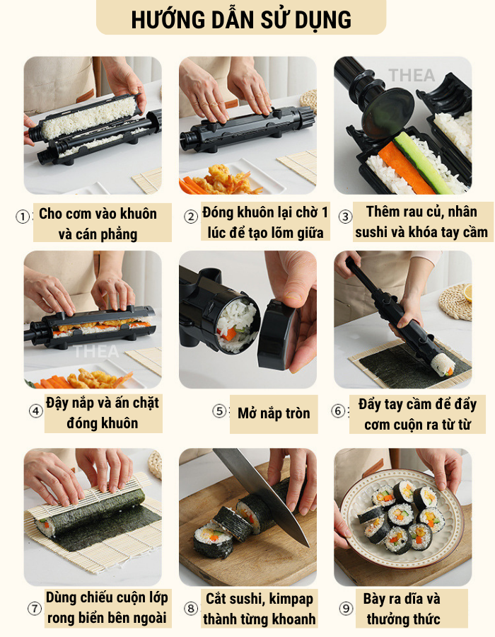 Ngoài ra, việc vệ sinh sản phẩm cũng rất dễ dàng, bạn chỉ cần chùi rửa nhẹ nhàng là có thể sử dụng lại. Đây thực sự là một dụng cụ không thể thiếu cho những buổi dã ngoại hay bữa cơm gia đình thân mật. Hãy thử ngay để cùng gia đình trải nghiệm làm sushi tại nhà nhé!