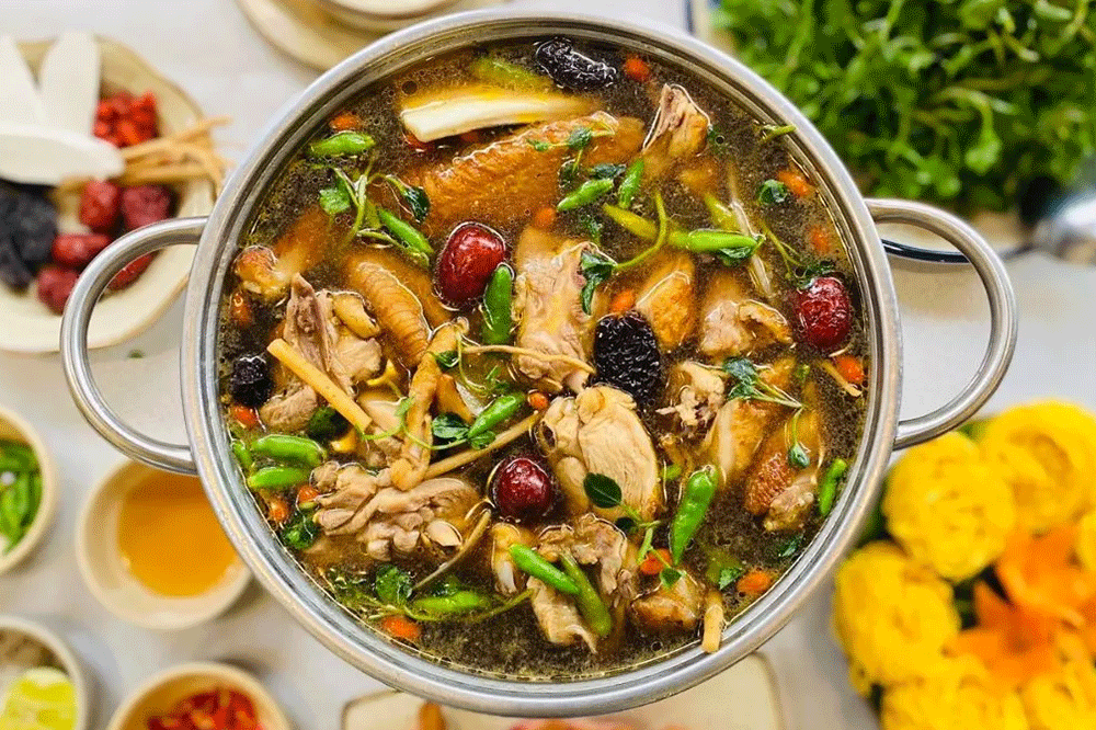 Để món lẩu thêm phần hấp dẫn, không thể thiếu những nguyên liệu như nấm đông cô, táo đỏ và kỷ tử, chúng không chỉ làm phong phú hương vị mà còn tăng cường giá trị dinh dưỡng cho món ăn. Trong quá trình nấu, bạn hãy chú ý thêm một chút nước dừa tươi để tạo nên vị ngọt thanh nhẹ, cân bằng với độ cay của ớt hiểm.