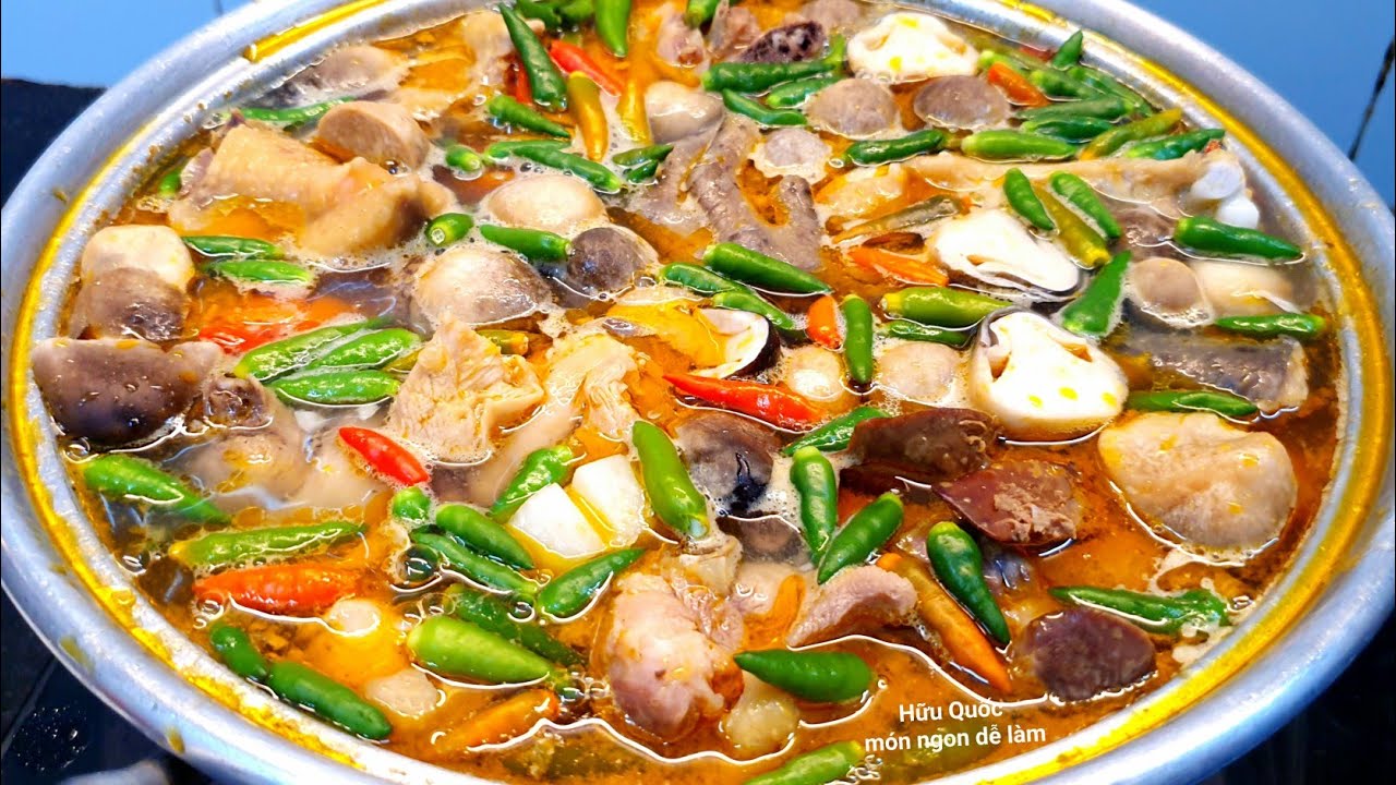 Sau đó, cho gà vào nấu cùng với nước và các loại rau củ, thêm ớt hiểm xanh để mang đến vị cay nồng đặc trưng. Món lẩu này không chỉ đem lại cảm giác ấm áp mà còn khiến bữa tiệc thêm phần hấp dẫn và vui vẻ. Hãy cùng thưởng thức và chia sẻ niềm vui cùng gia đình và bạn bè trong những ngày lạnh này!