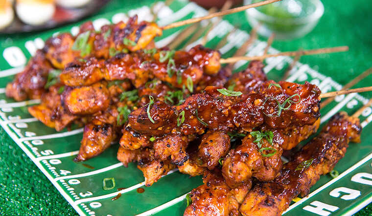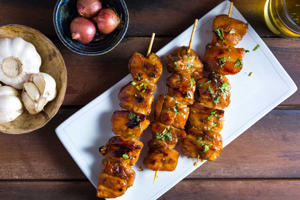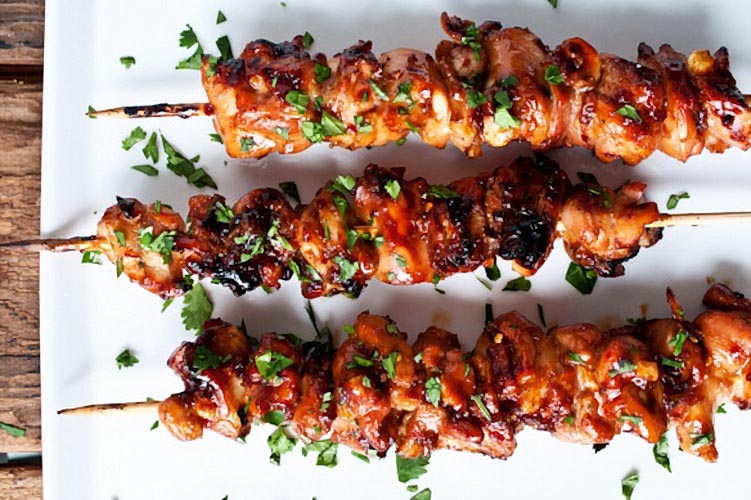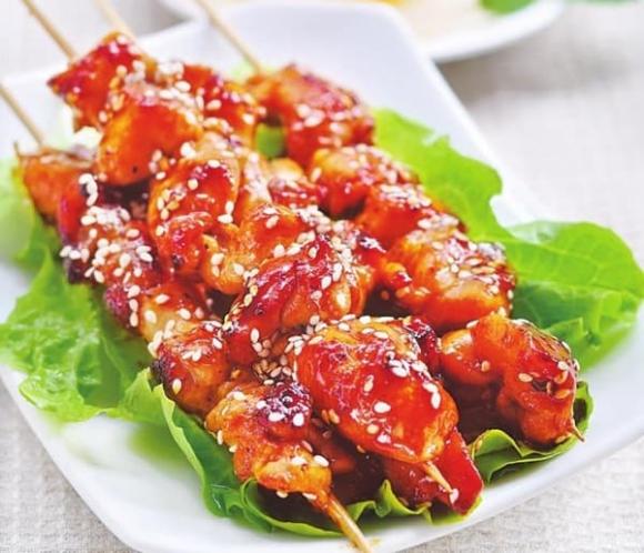 Gà xiên nướng mật ong là món ăn tuyệt vời cho những bữa cơm gia đình thêm phần hấp dẫn. Cách làm rất đơn giản. Đầu tiên, bạn chuẩn bị nước xốt bằng cách trộn đều mật ong, nước tương, dầu hào và hạt tiêu đen trong một tô lớn. Sau đó, ướp thịt gà với hỗn hợp này để thấm đều gia vị.