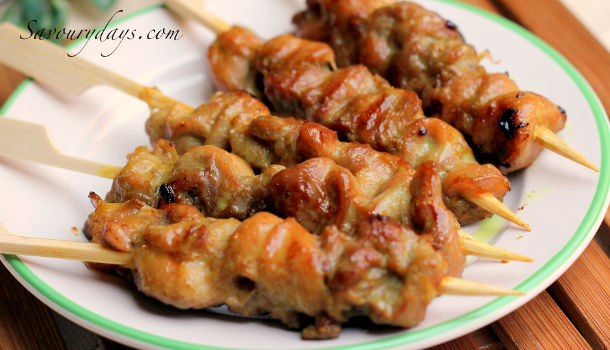 Sau khi làm xốt xong, đùi gà được thái miếng vừa ăn, ướp với hỗn hợp gia vị cùng với hành tây trong khoảng 30 phút để thịt thấm đều. Nếu bạn muốn thêm phần hấp dẫn, có thể kết hợp với vài miếng ớt chuông nhiều màu sắc. Khi đã ướp xong, hãy xiên từng miếng gà vào que và để riêng.