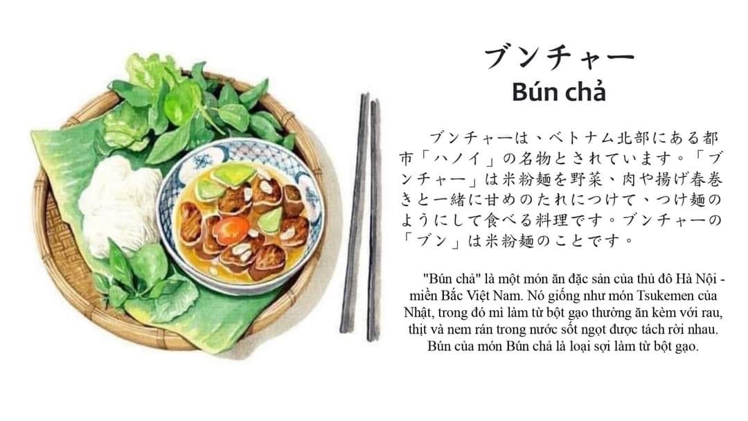 Khi mời bạn bè Nhật Bản thưởng thức bún chả, tôi thường hứng thú nói rằng, “食べてみてください!” (Tabete mite kudasai!), có nghĩa là “Hãy thử ăn thử nhé!” Qua đó, tôi không chỉ giới thiệu món ăn mà còn kết nối thêm những trải nghiệm văn hóa ẩm thực thú vị giữa hai nền văn hóa.