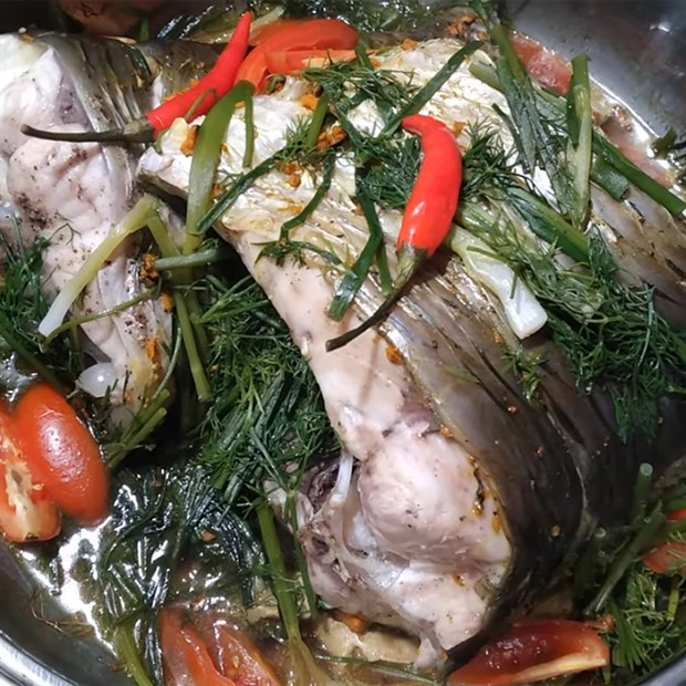 Sau khi hấp xong, bạn có thể cho thêm hành tươi, thì là, hoặc cà chua xung quanh cá để làm món ăn thêm hấp dẫn. Khi cá chín, thịt sẽ mềm mại, hòa quyện cùng hương thơm của gừng và các gia vị khác, tạo ra một món ăn thơm ngon, bổ dưỡng cho cả gia đình.