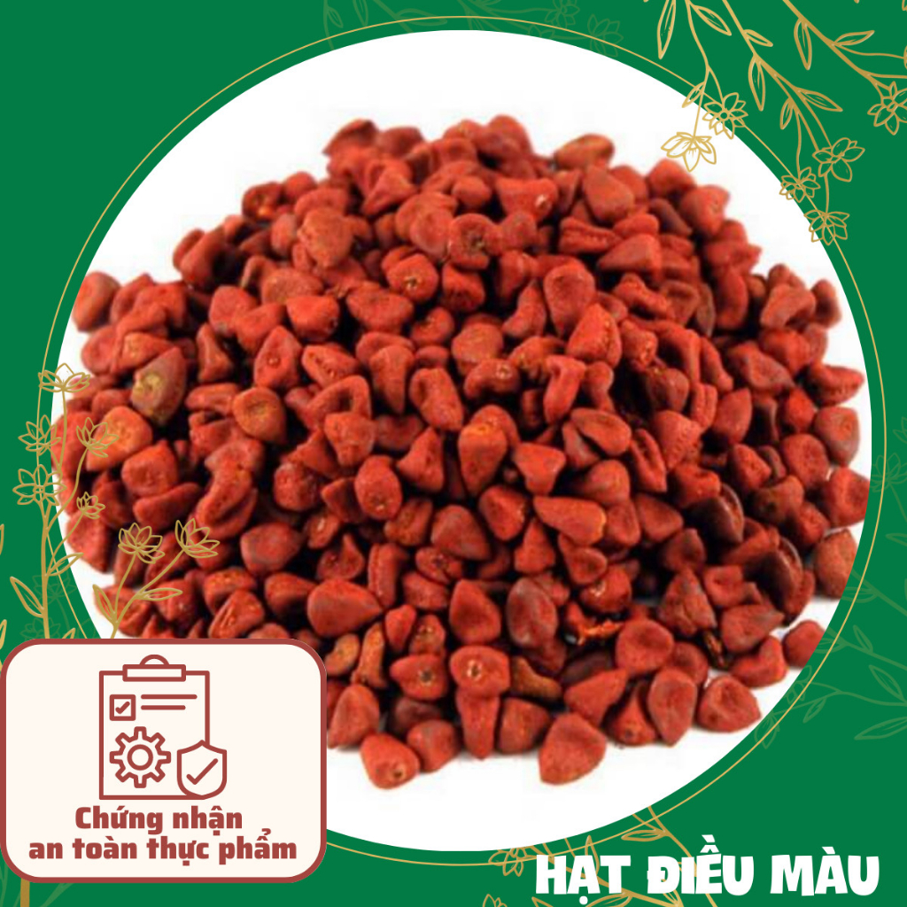 Hạt điều màu được biết đến như một loại phẩm màu tự nhiên, thường được sử dụng trong ẩm thực để tạo màu sắc hấp dẫn cho các món ăn. Màu sắc của hạt điều màu chủ yếu nhờ vào các hợp chất carotenoids và anthocyanins, với carotenoids mang lại màu vàng, cam hoặc đỏ. Đặc biệt, hạt điều màu không chỉ mang lại vẻ đẹp cho món ăn mà còn chứa nhiều vitamin A, selenium và calcium, giúp tăng cường sức khỏe.
