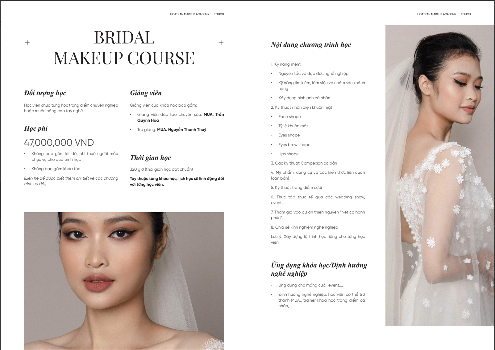 Nếu bạn đang tìm kiếm một khóa học trang điểm cô dâu chuyên nghiệp, thì khóa học tại Quân Nguyễn & Pu Lê Academy chính là lựa chọn lý tưởng. Trong vòng 2 tháng, bạn sẽ được hướng dẫn từ những kỹ thuật cơ bản đến nâng cao, từ đó nâng cao kỹ năng trang điểm và tự tin hơn khi tiếp xúc với khách hàng.