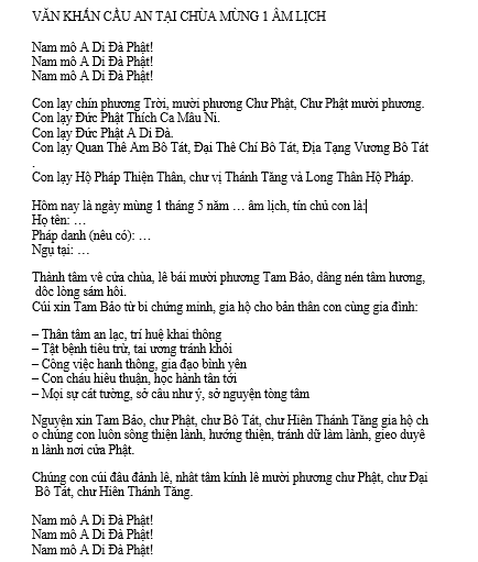 Khi đến chùa cầu bình an, không chỉ đơn thuần là việc tôn kính Thần Phật mà còn là một cách thể hiện niềm tin và hy vọng của mỗi người. Văn khấn là một phần không thể thiếu trong nghi lễ này, giúp người dân gửi gắm những ước nguyện của mình lên cõi tâm linh. Một bài văn khấn đơn giản mà bạn có thể dễ dàng thuộc và sử dụng như lời cầu nguyện, ví dụ như: “Nam mô A Di Đà Phật! Đệ tử con thành tâm kính lạy Mười phương chư Phật, chư vị Bồ Tát…”.