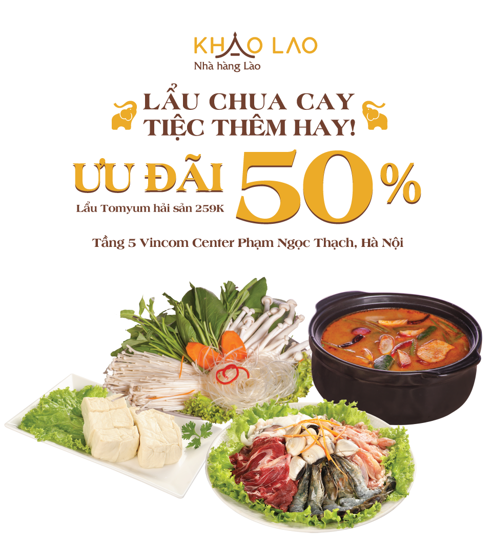 Điểm đặc biệt của Khao Lao còn nằm ở chương trình khuyến mãi hấp dẫn. Khi đi cùng nhóm từ ba người trở lên, khách hàng sẽ nhận được một trong hai món quà: Mực pắt trứng muối hoặc Lạp bò. Chưa kể, một nồi lẩu Tomyum hải sản size nhỏ cũng được giảm 50%, vừa hấp dẫn vừa tiết kiệm chi phí cho những buổi liên hoan.