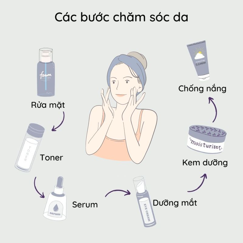 Quy trình chăm sóc da thường theo 10 bước cơ bản, bắt đầu từ việc tẩy trang và làm sạch lớp makeup, tiếp theo là rửa mặt để loại bỏ bụi bẩn và dầu thừa. Khóa học không chỉ dạy về kỹ thuật chăm sóc da mà còn cung cấp kiến thức về mỹ phẩm và máy móc hiện đại. Hơn nữa, học viên còn được học cách massage mặt để tạo cảm giác thư giãn cho khách hàng.
