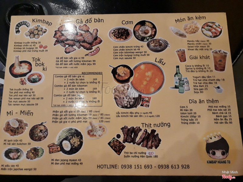 Ngoài kimbap nổi tiếng, quán còn có nhiều món ăn khác, mang đậm hương vị Hàn Quốc. Với mức giá hợp lý, chỉ từ 68k cho một phần kimbap, quán rất phù hợp cho những buổi ăn nhẹ hay bữa tối thú vị. Quán cũng thường xuyên có các ưu đãi hấp dẫn, như mã giảm giá hay giao hàng tận nơi, giúp bạn có những trải nghiệm ẩm thực tuyệt vời nhất.