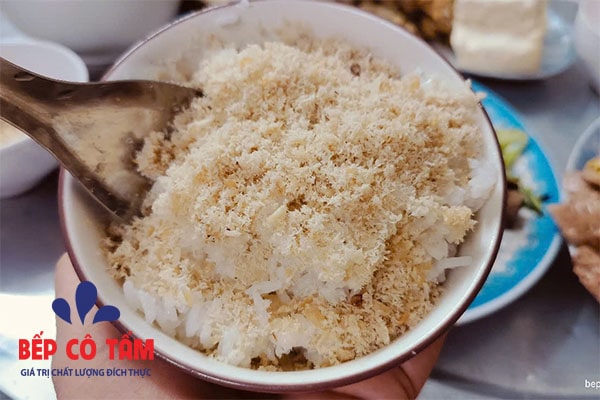 Tiếp theo, cho cá vào nồi hấp cùng với vài lát gừng và hành tím để giữ hương vị thơm ngon. Sau khi cá chín, mẹ lấy phần thịt phi lê, loại bỏ xương và da. Trộn thịt cá với một chút muối, bột ngọt, và nước mắm để tăng thêm hương vị. Bắc chảo lên bếp, cho vào 1 muỗng canh dầu điều và phi thơm hành tỏi, sau đó vớt bỏ hành tỏi rồi cho thịt cá vào xào.