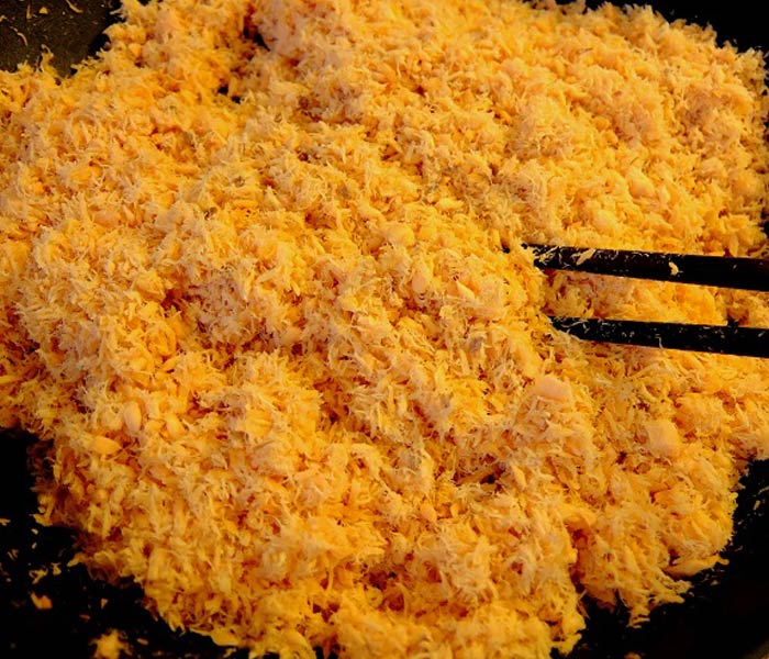 Cuối cùng, các mẹ nên rang tơi ruốc cá thu trong chảo cho đến khi đạt được độ xốp mong muốn. Miếng ruốc cá thu thành phẩm không chỉ có màu sắc hấp dẫn mà còn thơm ngon, bổ dưỡng, chắc chắn bé yêu sẽ thích mê món ăn này! Món ăn như vậy thật tiện lợi cho bữa ăn dặm của bé, vừa dễ làm vừa đảm bảo vệ sinh.