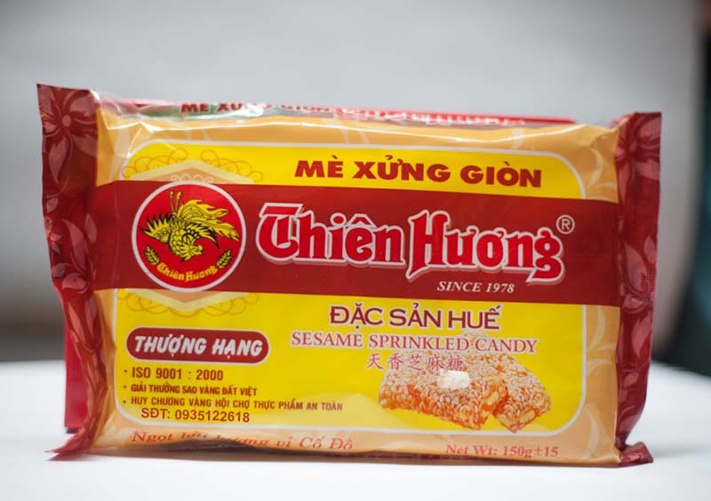 Nếu bạn ghé thăm Huế, đừng quên thử những thương hiệu kẹo mè xửng nổi tiếng như Thiên Hương, Nam Thuận hay Tài Ký. Mỗi loại kẹo mang đến một hương vị riêng, nhưng tất cả đều dẻo thơm, kết hợp hài hòa giữa vị ngọt của đường và hương thơm đặc trưng của vừng.