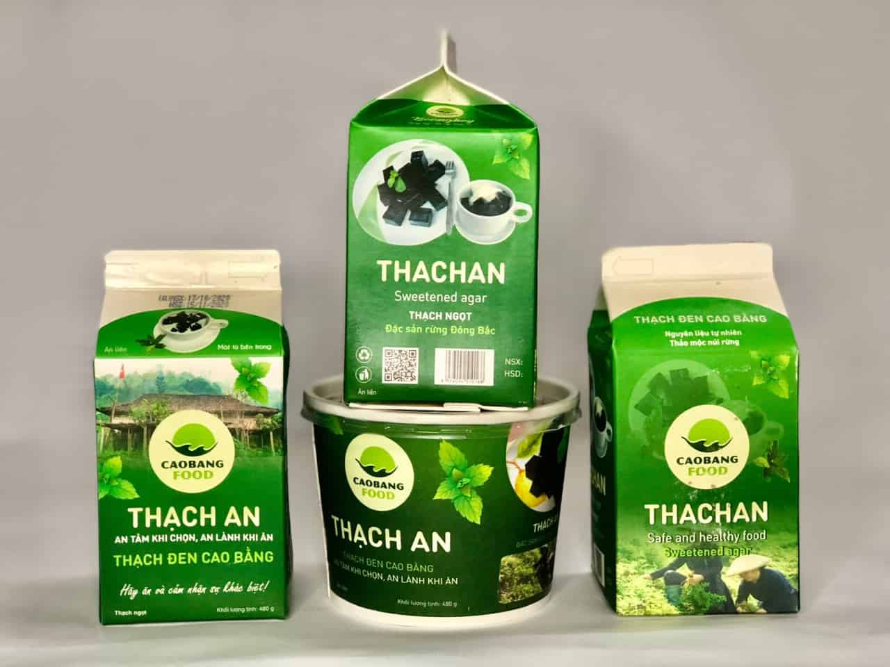 Thạch đen Cao Bằng, hay còn gọi là sương sáo, được làm từ cây thạch đen chỉ trồng một vụ mỗi năm. Sản phẩm này có nhiều kiểu dáng, màu sắc độc đáo và thường xuyên được bán với giá ưu đãi. Tại các siêu thị, bạn sẽ dễ dàng tìm thấy những hộp thạch đen đầy màu sắc, từ hộp tròn đến hộp vuông, rất hấp dẫn cho việc thưởng thức hoặc làm quà.