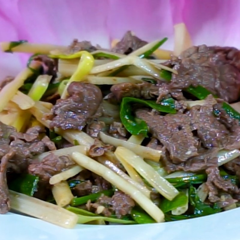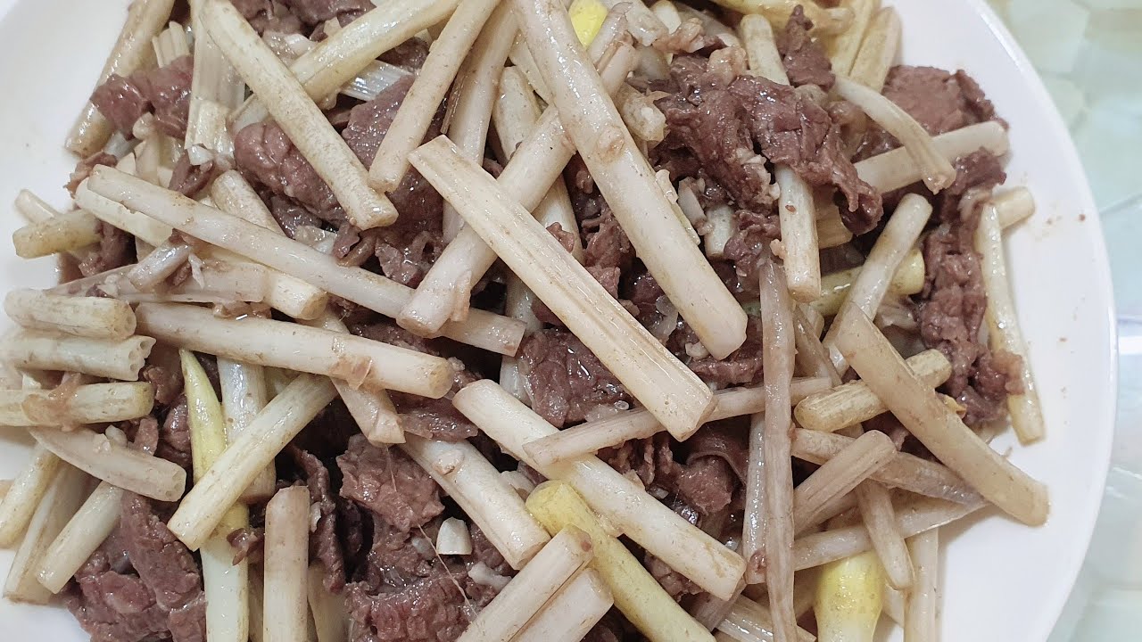 Bắt đầu, bạn cắt ngó sen thành đoạn nhỏ, sau đó ngâm ngay trong hỗn hợp giấm pha loãng để giữ độ giòn. Thịt bò thì rửa sạch, cắt mỏng và ướp với tỏi băm cùng hạt nêm trong khoảng 5 phút. Sau đó, đun nóng chảo, cho thịt bò vào xào nhanh trong vòng 2-3 phút cho đến khi tái, rồi gắp ra ngay để tránh thịt bị dai.