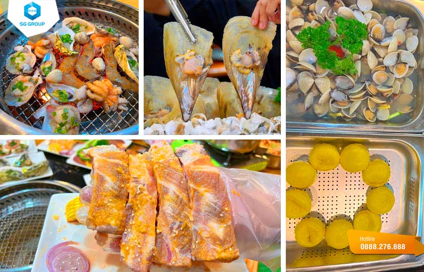 Nguyên liệu được nhà hàng chăm chút kỹ lưỡng, mua mới và sơ chế sạch sẽ hàng ngày, đảm bảo chất lượng từng món ăn. Kubo không chỉ phục vụ hải sản tươi sống mà còn có các món thịt bò nhập khẩu từ Mỹ, mang lại cho thực khách những trải nghiệm thưởng thức đa dạng và thú vị.