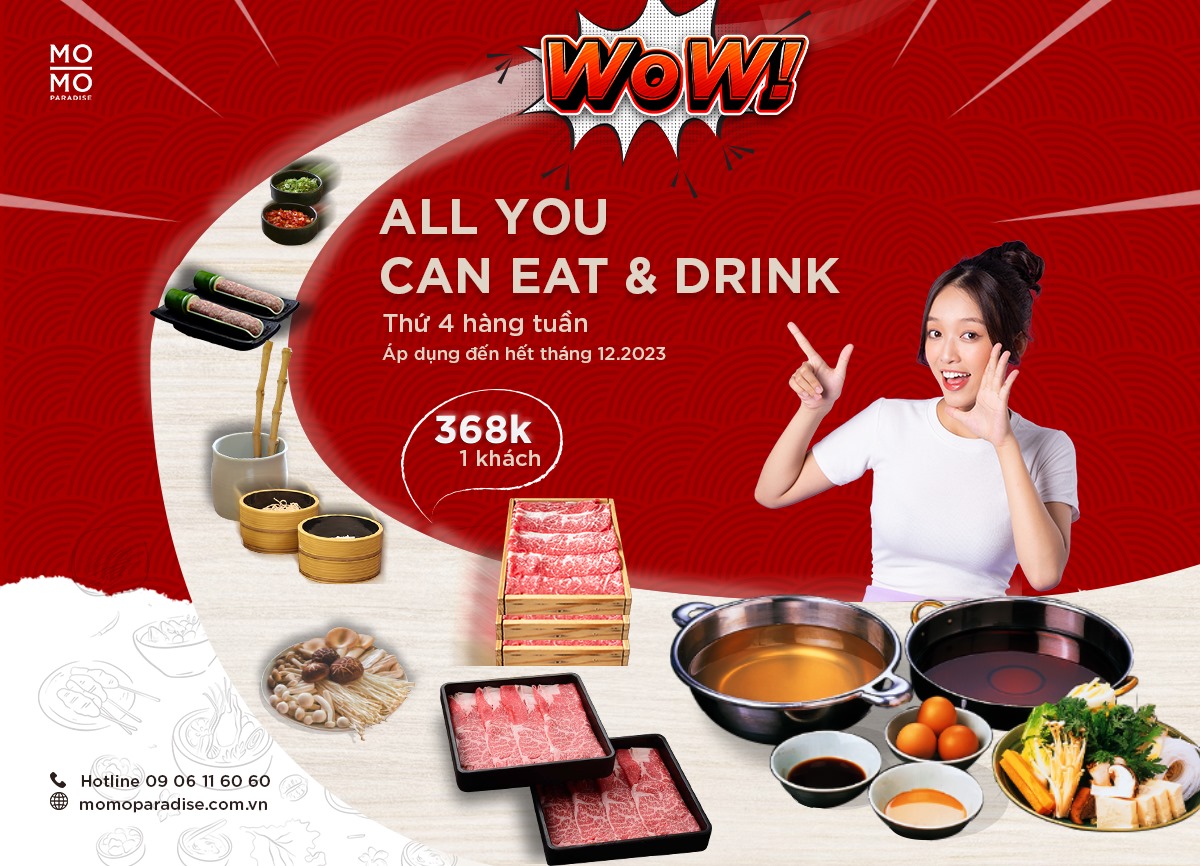 Đặc biệt, nhà hàng còn giới thiệu “WOW Buffet” với diện mạo mới, chỉ từ 368.000 đồng/người. Bạn có thể thưởng thức các món như nạc vai bò Úc, ba rọi bò Mỹ và nhiều món khác. Đây thực sự là cơ hội lý tưởng để trải nghiệm buffet lẩu Nhật với chất lượng hàng đầu Châu Á.