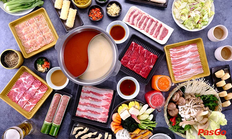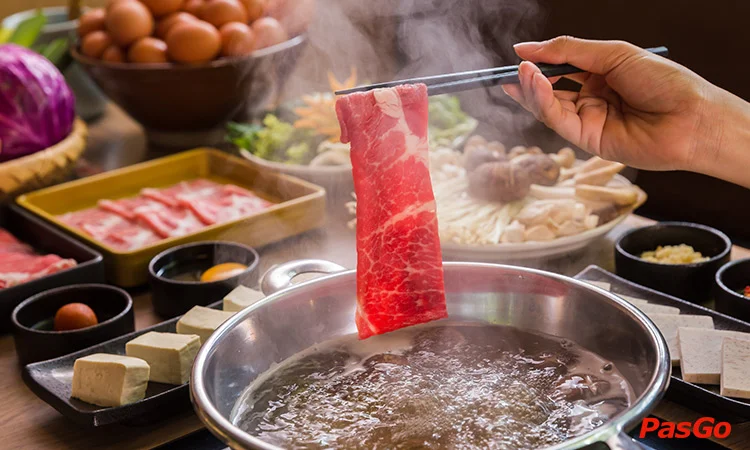 Bên cạnh đó, thực khách còn có cơ hội trải nghiệm bữa tiệc buffet lẩu với 4 loại nước lẩu độc đáo, mỗi loại mang đến hương vị đậm đà riêng: Shabu Shabu, Sukiyaki, Miso Kimuchi và Goma Tounyu. Không gian nhà hàng ấm áp, thích hợp cho những ngày mưa lạnh, khi một nồi lẩu nghi ngút khói, thịt nhúng mềm tan là điều cần thiết để giữ ấm cơ thể.