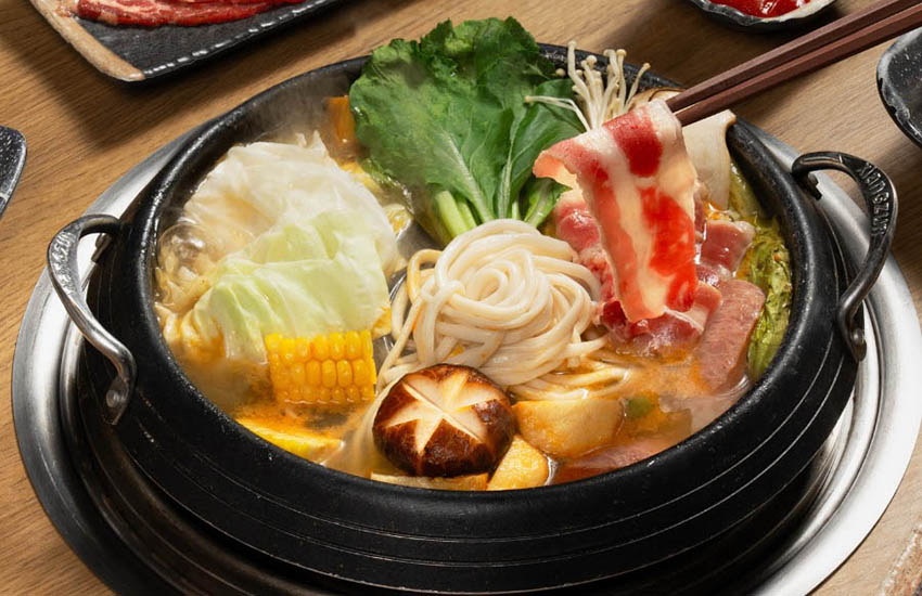 Shabu Shabu là món lẩu nổi bật, lấy nước dùng trong suốt, thanh nhẹ, được hầm từ nhiều loại rau như bắp cải, nấm và rong biển. Thịt bò Úc và thịt heo được cắt lát mỏng, dễ dàng nhúng vào nồi nước sôi để chín vừa, tạo nên sự tươi ngon không thể cưỡng lại.