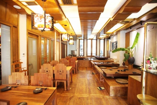Nhà hàng được thiết kế theo phong cách cổ điển Nhật Bản, kết hợp khéo léo với kiến trúc Việt Nam cổ và Champa. Những bộ bàn ghế gỗ quý như Lim không chỉ mang lại sự sang trọng mà còn tạo cảm giác ấm cúng. Đến đây, thực khách không chỉ được thưởng thức những món ăn ngon mà còn tận hưởng một không gian thư giãn tuyệt vời.