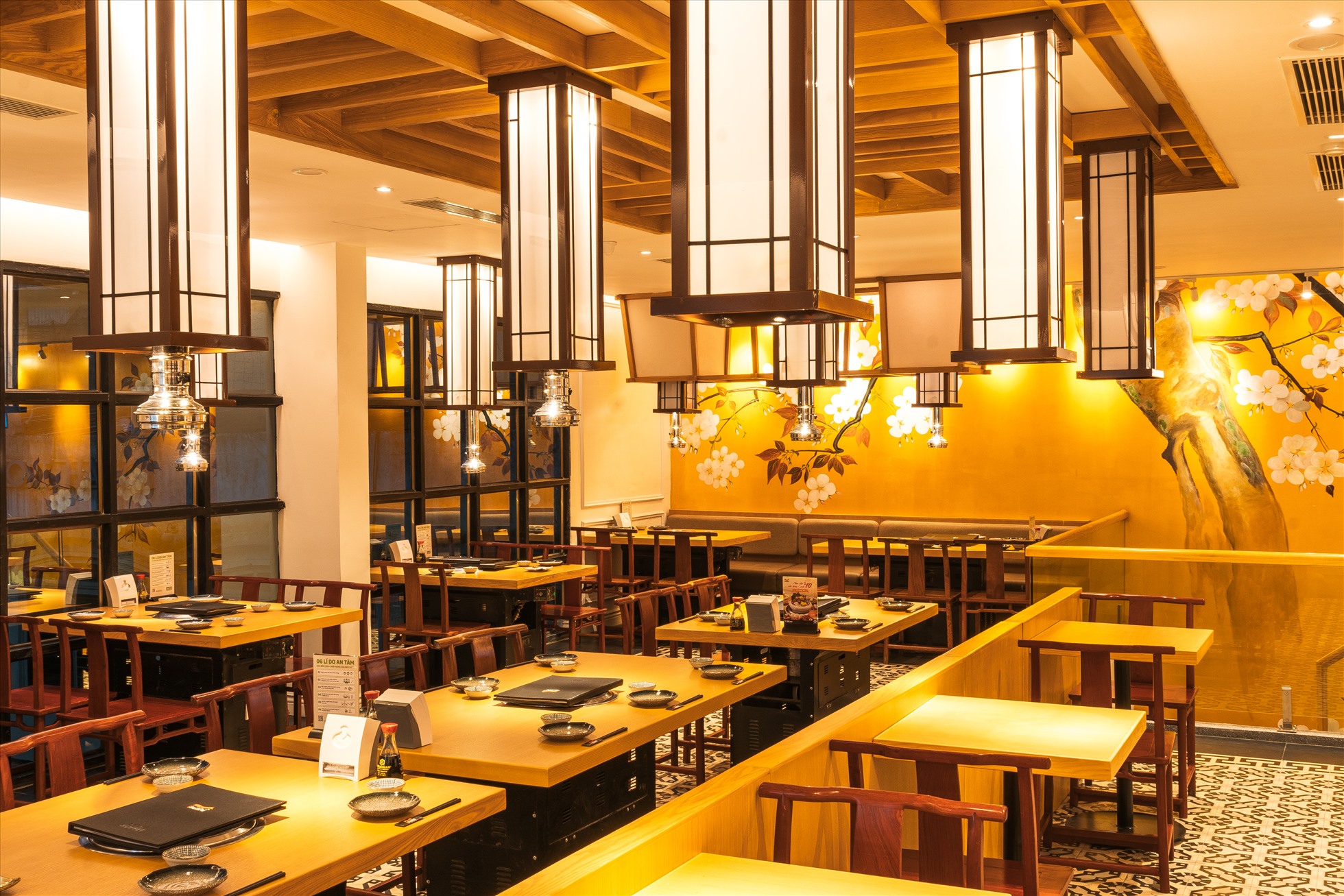 Một trong những điểm nhấn độc đáo của thiết kế nhà hàng Nhật là việc tận dụng ánh sáng tự nhiên. Cửa sổ lớn và tường kính được sử dụng nhiều để mang ánh sáng vào bên trong, làm cho không gian trở nên thông thoáng và rộng rãi hơn. Không gian Tatami truyền thống với những chiếc chiếu mây và bàn thấp cũng là một phần quan trọng, mang đậm văn hóa bản địa và tạo cảm giác gần gũi.