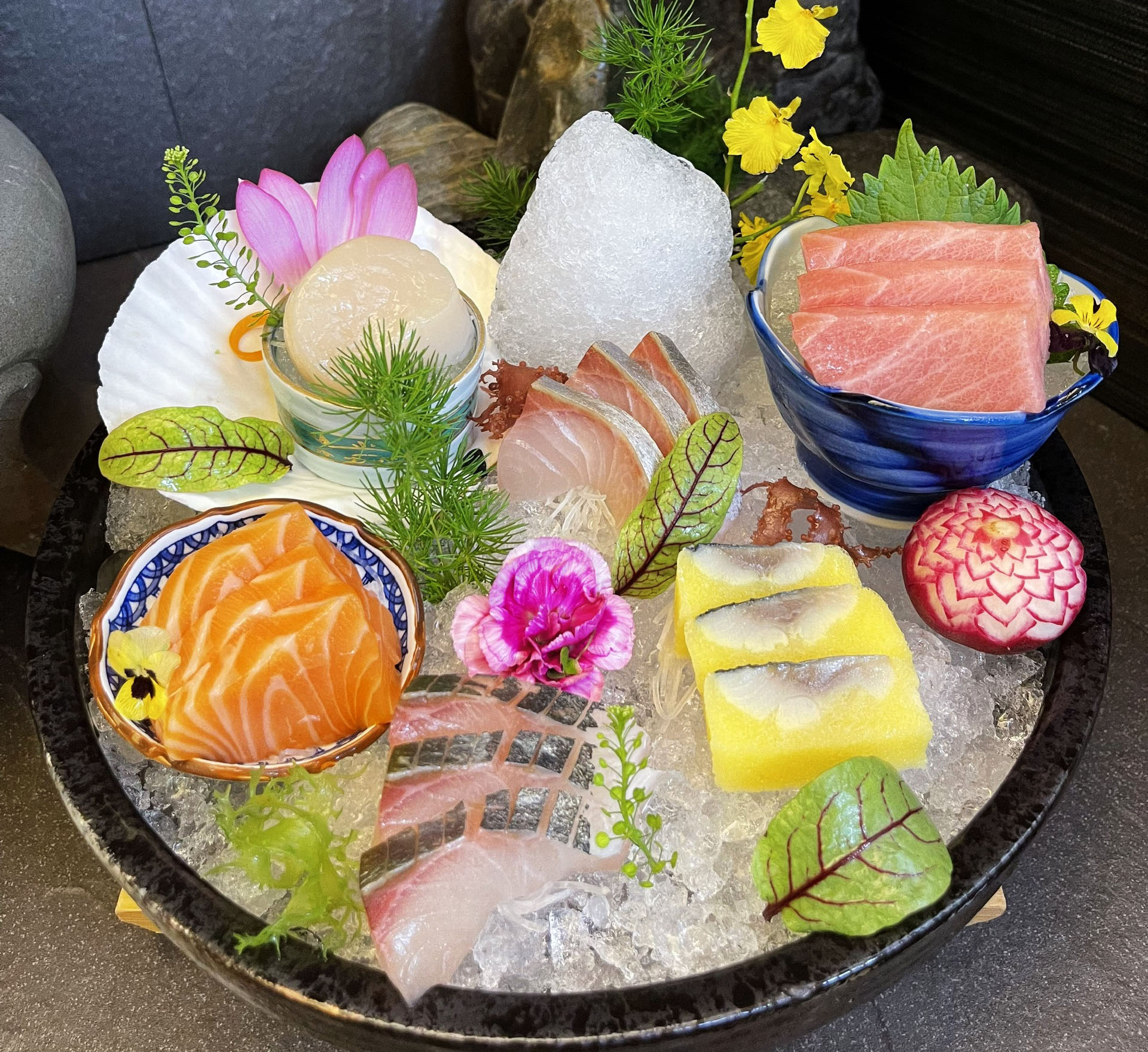 Đội ngũ đầu bếp tài năng, từ chính đến phụ bếp, luôn sẵn sàng đáp ứng mọi nhu cầu của thực khách, cho dù bạn đến thưởng thức một bữa tối ấm cúng hay một buổi tiệc thân mật. Menu phong phú với sushi, sashimi, maki, tempura và lẩu Nhật đầy hấp dẫn sẽ khiến bạn cảm thấy thích thú.