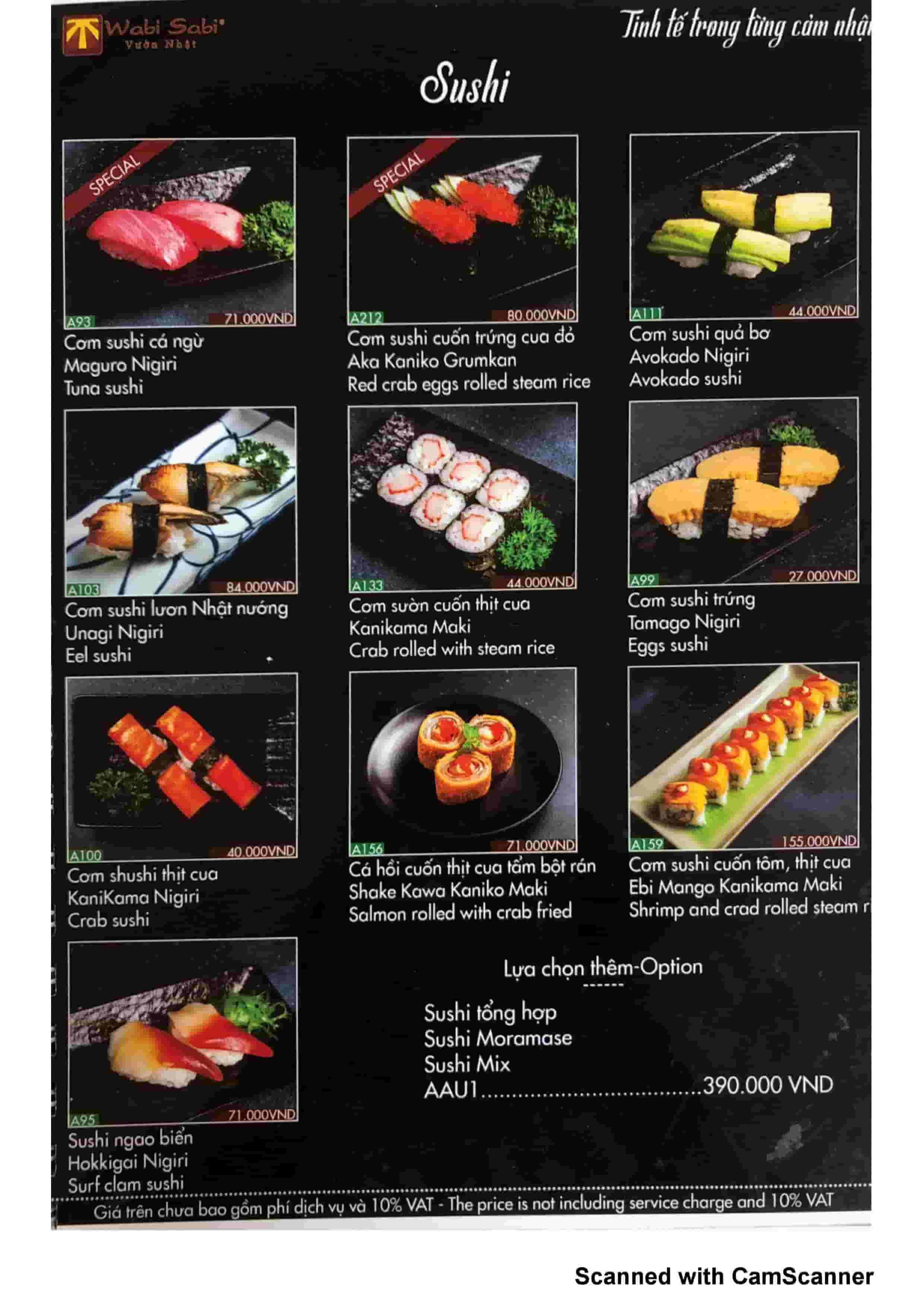 Menu Nhà Hàng Wabi Sabi Vườn Nhật