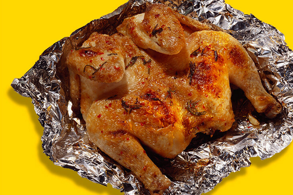 Gà nguyên con bọc giấy bạc nướng vàng óng hấp dẫn