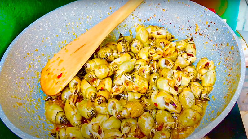 Tiếp tục, bạn cho ốc vào chảo, thêm 50g bơ, 10g tỏi và 10g ớt xay vào, xào cho bơ thấm đều vào ốc. Để món ăn thêm phần đậm đà, bạn có thể cho một chút sữa tươi vào, nêm nếm gia vị cho vừa khẩu vị. Khi nước gần cạn, món ốc của bạn đã sẵn sàng để thưởng thức cùng cơm nóng. Thật đơn giản mà lại ngon phải không nào?