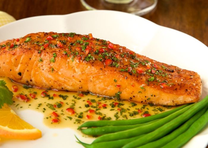 Cuối cùng, bạn có thể rưới lên cá một hỗn hợp gồm bơ, mật ong, nước cốt chanh và xì dầu để tạo hương vị đậm đà hơn. Món cá hồi áp chảo này không chỉ thơm ngon mà còn giúp bạn thưởng thức được hương vị thanh nhẹ, rất thích hợp cho bữa ăn gia đình.