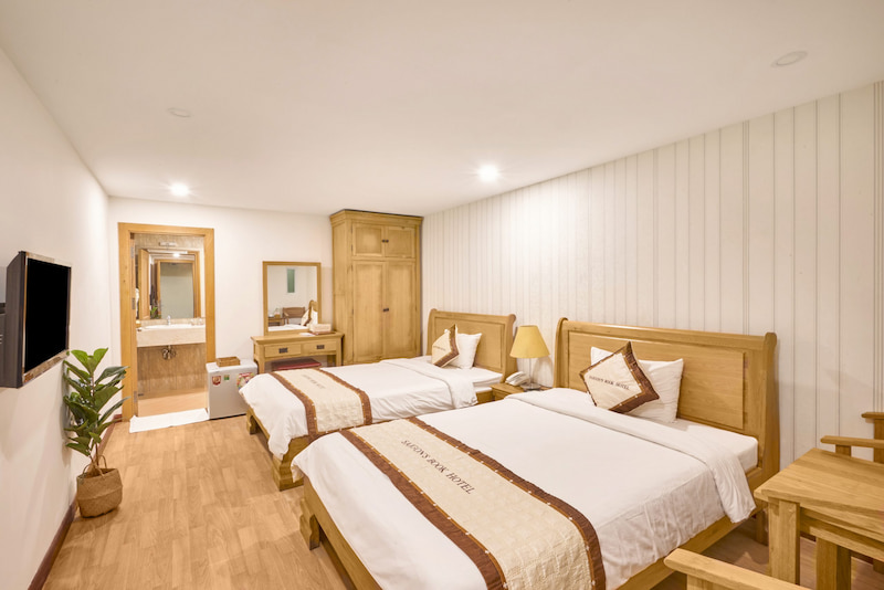 Phòng 2 giường đôi là lựa chọn tuyệt vời dành cho nhóm bạn hoặc gia đình khi ghé thăm khách sạn. Với khả năng phục vụ lên đến 4 người, phòng này mang đến không gian rộng rãi và thoải mái để mọi người có thể nghỉ ngơi sau một ngày dài khám phá.