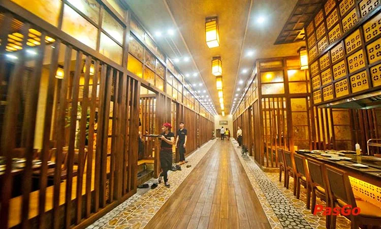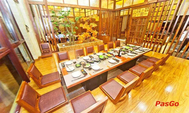 Đặc biệt, khi đặt bàn qua PasGo, bạn sẽ được giảm giá lên tới 15%, một ưu đãi hấp dẫn không nên bỏ qua. Mức giá tại đây dao động từ 400.000 đến 700.000 đồng/người, rất phù hợp cho cả gia đình, bao gồm cả trẻ nhỏ. Không gian được thiết kế sang trọng, mang đậm phong cách Nhật Bản, tạo cảm giác thoải mái và gần gũi choทุก thực khách.