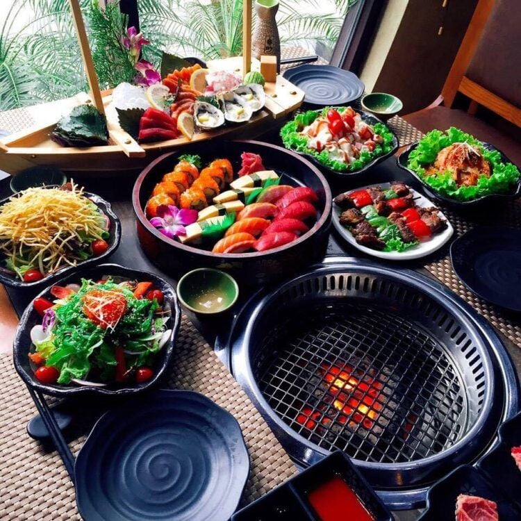 Đến Sashimi BBQ Garden, bạn sẽ được thưởng thức vô vàn món ăn phong phú. Thực đơn buffet đa dạng với các set cho phép mọi người thỏa sức lựa chọn. Chúng tôi đã thử sashimi cá hồi, cá ngừ, bạch tuộc và hào sữa, tất cả đều tươi ngon và chế biến rất vừa miệng. Đặc biệt, cách thức nấu nướng không khói được trang bị tại đây giúp giữ nguyên hương vị quyến rũ của từng món ăn.