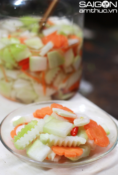 Cuối cùng, sắp xếp tất cả vào một bình, đổ hỗn hợp nước sốt vào, đậy nắp lại. Chỉ sau một ngày, bạn đã có thể thưởng thức món dưa góp thơm ngon, chua chua, giòn giòn, góp phần làm phong phú thêm mâm cơm ngày Tết của gia đình.