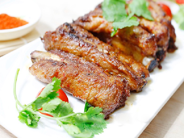 Sau khi ướp sườn với các gia vị trong khoảng 30 phút, bạn có thể nướng sườn bằng nồi chiên không dầu hoặc trên lửa than để có màu sắc golden brown hấp dẫn. Món sườn nướng muối ớt sẽ trở nên hoàn hảo khi ăn kèm với cà chua, dưa leo hay các loại rau thơm như xà lách, ngò rí.